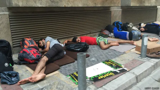 Suriyeliler, Dera'dan, Rakka'dan, Halep'ten gelmişler; Almanya, Danimarka, İsveç'e gitmek istiyorlar.