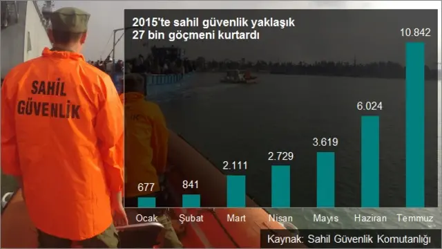 Geçen sene toplam 22 bin "düzensiz göçmen kurtarılırken" bu sayı bu yılın daha ilk 7 ayında 27 bine ulaştı. Havaların daha da ısındığı ve seyahatin kolaylaştığı Temmuz ayında bu sayı 10 bin oldu.