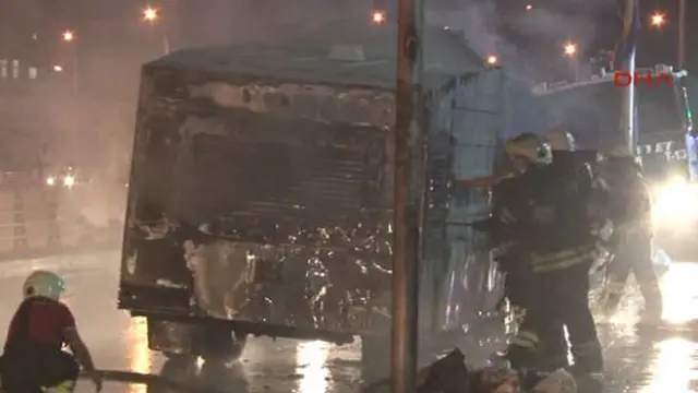 Parti binası önünde güvenlik önlemi alan TOMA yandı.