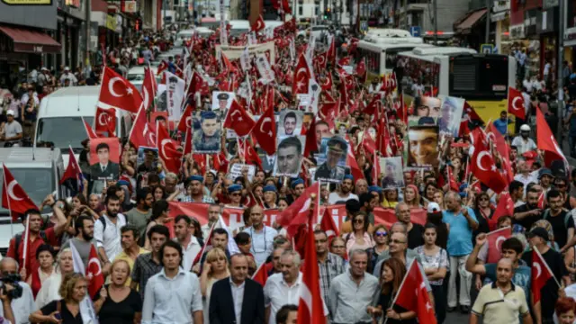 Yozgat’taki yürüyüşte “Kahrolsun PKK, işbirlikçi AKP” sloganları atıldı. Tekbirlerle yürüyen grup İstiklal Marşı okuyup, dua ettikten sonra dağıldı.