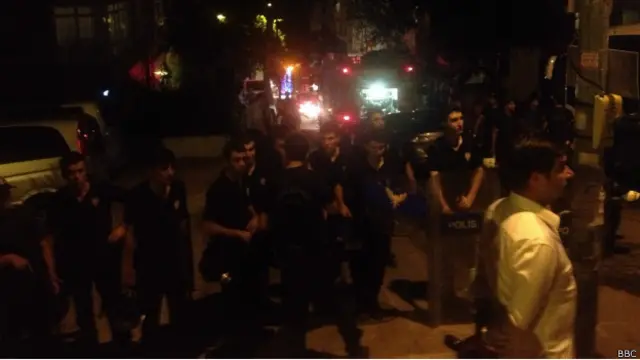 İlk müdahalede dağılan göstericilerden 50-100 kişilik bir grup tekrar binanın olduğu sokak önünde toplandı. Polisin, sokağa girişlerine izin vermeyince de bozkurt işaretleri yaparak, “Emniyet yol versin, çatışmalar başlasın” sloganları attılar. Aynı zamanda da araçlarından aralıksız Mehter Marşı çalındı.