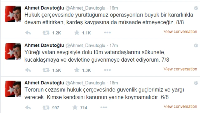 Baişbakan Ahmet Davutoğlu Hürriyet gazetesine ve HDP Genel Merkezi'ne düzenlenen saldırılar sonrası Twitter hesabından bir açıklama yaptı.