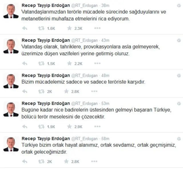 Öte yandan, Cumhurbaşkanı Recep Tayyip Erdoğan Twitter hesabından paylaştığı mesajla sağduyu çağrısı yaptı.