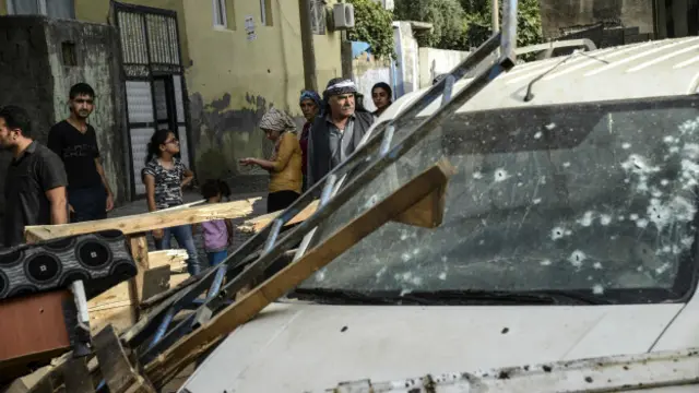Kalabalıktan biri, "Cizre'den oy çıkmadı ya bu yüzden bizi evimizde hapsettiler. Bu yüzden ilçemizi Kobani'ye çevirdiler" diyor.