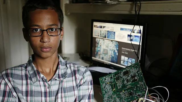 Teksas'ın Dallas kenti yakınlarındaki Irving kasabasında yaşayan Muhammed, öğretmenlerinin gözüne girmek için evde tek başına elektronik bir saat yaptı ve saati öğrencisi olduğu MacArthur lisesindeki fen bilimi öğretmenine göstermek için okula götürdü.