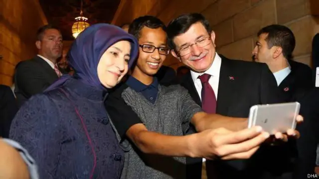 New York Halk Kütüphanesi'nde "Gelibolu, bir milletin direniş destanı" adlı fotoğraf sergisinin açılışını yapan Davutoğlu, ABD'nin Teksas eyaletinde öğretmenine göstermek için okula götürdüğü elektronik saatin bomba sanılması üzerine kelepçelenerek gözaltına alınan Müslüman öğrenci Ahmed Muhammed de görüştü ve onunla fotoğraf çektirdi.
