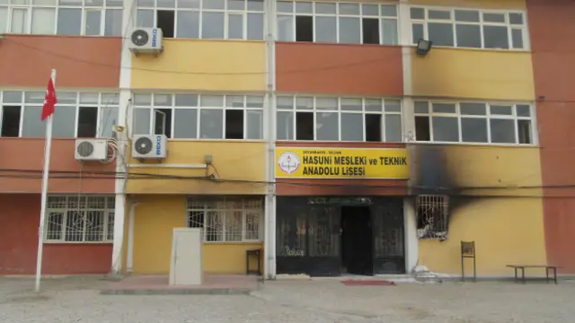 Yatılı Bölge İlköğretim Okulu sınırlarında Hasuni Anadolu Lisesi ve Pansiyonu kullanılmayacak derecede tahrip olmuş.