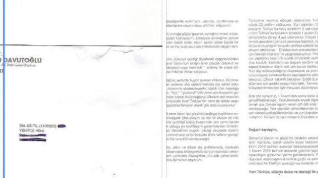 Geçen hafta Başbakan Davutoğlu imzasıyla başta Almanya ve Hollanda olmak üzere yurtdışındaki seçmenlere birer mektup gönderilmişti.