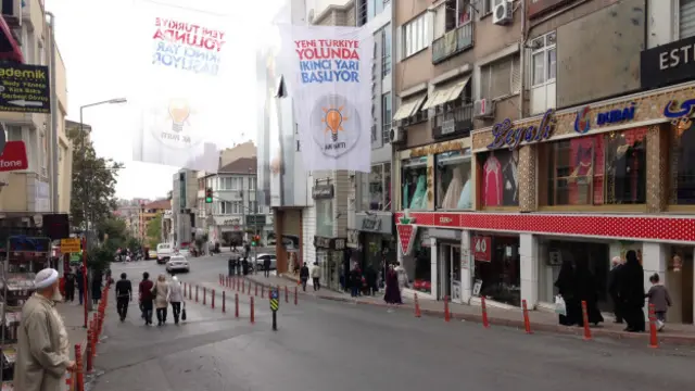 Bugünlerde dört yanında AKP bayrakları, afişleri, pankartları bulunan Eyüp'ün en hareketli yeri Eyüp Sultan Camii ve çevresi...