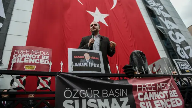 "Cumhuriyet'in Genel Yayın Yönetmeni, 'Erdoğan bu. Eleştiriden nefret ediyor' diyor. Baskın, Türkiye'de gazetecilere yönelik baskıların arttığı bir döneme rastlıyor. Gazetecileri Koruma Komitesi dahil bazı basın özgürlüğü kuruluşlarının ortak raporunda Haziran seçimlerinden sonra gazetecilere yönelik baskının arttığı, bunun Türkiye demokrasisini tehdit ettiği belirtildi."