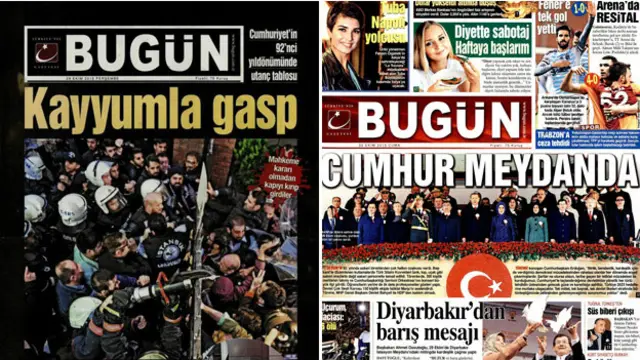 Bugün gazetesinin basılmayan Perşembe günkü sayısında manşet 'Kayyumla gasp'tı. Gazetenin bugünkü manşetinde ise Cumhuriyet Bayramı kutlamaları manşete taşındı ve "Cumhur meydanda" başlığı kullanıldı.