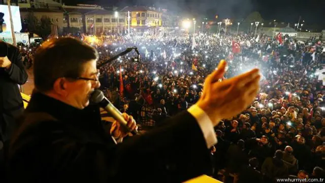 Ahmet Davutoğlu "Sizler ülkemiz üzerinde oynanan oyunları gördünüz ve bu oyunları bozdunuz. 'Biz buradayız' dediniz, 'Kıyamete kadar buradayız' dediniz... 81 ilin, 7 bölgenin tamamında oylarını artırarak AK Parti'ye 'Tek başına, iş başına' dediniz" diye konuştu.