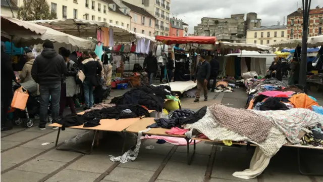 Saint Denis garından iner inmez çoğunlukla Afrika’dan göç edenlerin açtığı tezgahlar görülüyor.