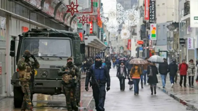 Salah Abdeslam'ın bulunması için operasyonlar düzenlenirken sokaklarda askerler devriye geziyor.