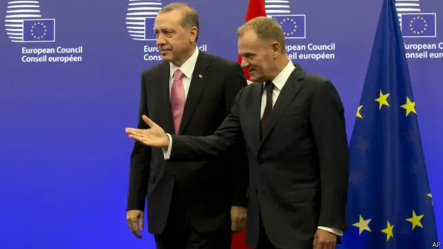Alex Barker yazısında AB'nin Türkiye'ye yönelik tavrıyla ilgili olarak, "Medyaya yönelik kısıtlamalara ve ayrılıkçı Kürtlere şiddete yönelik kaygılar bir kenara itildi. Göç konusu herşeyin önüne geçti" yorumunda bulunuyor.