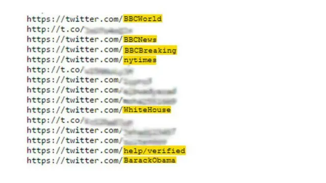 Fakat binlerce isim arasında ABD Başkanı Barack Obama'nın, hatta BBC Haber Dairesi'nin resmi hesapları bile var.