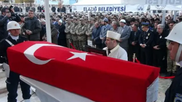 Diyarbakır’da dün Baro Başkanı Tahir Elçi'nin öldüğü çatışmada hayatını kaybeden polis memurları memleketleri Elazığ ve Kahramanmaraş'ta toprağa verildi.
