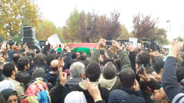 Diyarbakır'da dün yaşanan çatışmada öldürülen Diyarbakır Baro Başkanı Tahir Elçi'nin cenazesi, İnsan Hakları Anıtı önündeki törenin ardından defnedildi.