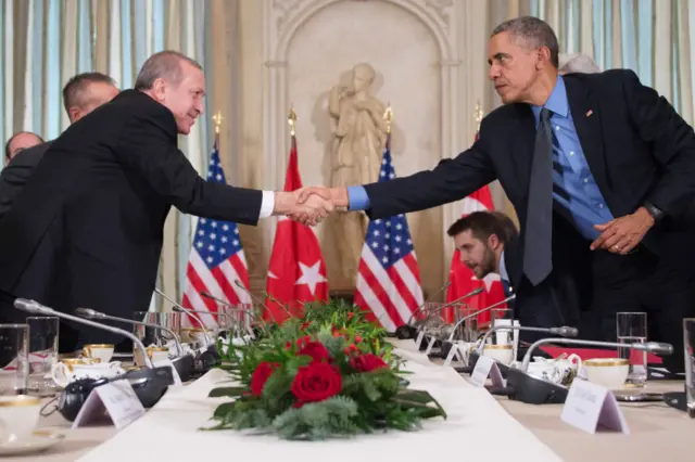 Erdoğan'la görüşmesinin ardından konuşan Obama, "Türkiye NATO müttefiki bir ülke. Türkiye'nin güvenliğine ve egemenliğine desteğimizi her zaman ifade ediyoruz. Türkiye ve Rusya'nın tansiyonu düşürme yolunda nasıl birlikte çalışabileceğini ve çözüm için diplomatik yolları görüştük" dedi.