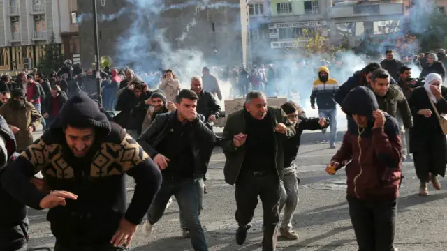 Sur mahallesinin hemen yakınındaki Dağkapı'da Şeyh Sait Meydanı'nda toplanan yüzlerce kişiye de polis müdahale etti.