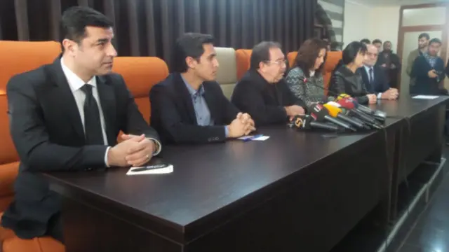 "HDP hem parti programında hem seçim beyannamesinde, hem parlamentoda Türkiye'nin yönetim biçiminin ne olması gerektiğini söylemiştir. O da öz yönetimdir. Hükümetin bir iç savaş görüntüsünün çok ötesine giden bu işgal tutumuna karşı bir tutum içindedir partimiz. AKP hükümetinin bugün Kürt halkına karşı açmış olduğu savaşta Kürt halkının yanındadır. Bunun meşru, haklı tarihsel gelişmeleri uzun uzun ifade edildi."
