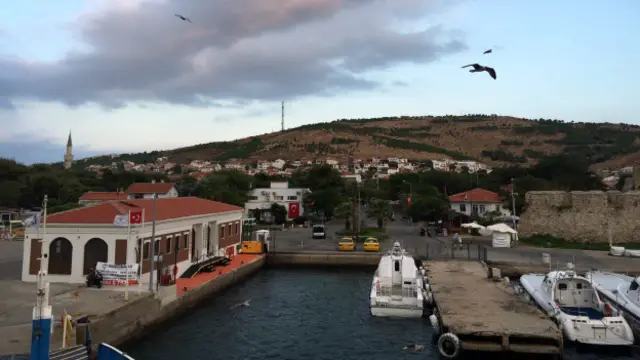 Geyikli Yükyeri iskelesinden kalkan feribotumuz adaya ulaştığında bizi bekleyen güzelliklerden habersizdik. Günbatımına yakın bir saatte adaya yaklaşırken sarmaşıklarla kaplı binalara, pencere önlerindeki rengarenk çiçeklere, pastel renkli balıkçı teknelerine ve adanın ortasındaki kaleye hayranlıkla bakıyorduk.