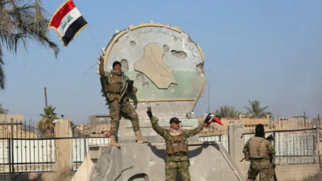 Televizyonlar Irak askerlerinin kent merkezindeki resmi binalara Irak bayrağı çekmesini gösteren görüntüler yayımladı.