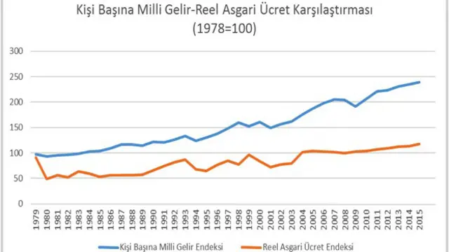 Ayrıca ekonomi 36 yılda yaklaşık 4 kat, kişi başına milli gelir 2,4 kat büyürken, asgari ücret bu kazançlardan çok az pay alabildi.