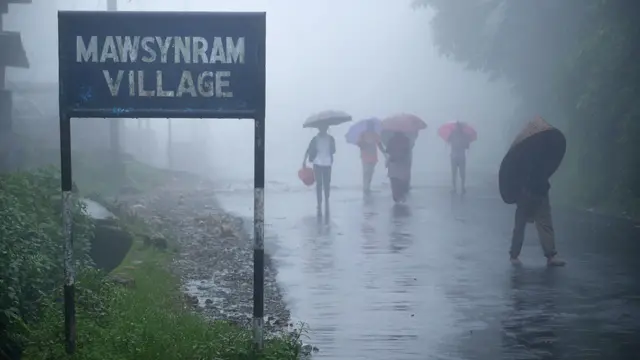 Meghalaya Eyaleti’nin bu kadar ıslak olmasının nedeni ise yılın belli döneminde rüzgarla güney ve güneydoğu Asya’ya taşınan muson yağmurları. Temmuz’da doruğa çıkmak kaydıyla, Mayıs’tan Ekim’e kadar süren muson mevsiminde bölgeye yıllık yağış miktarının yüzde 90’ı düşmüş olur. Aralık’tan Şubat’a kadar olan kuru dönemde ise çok az yağış görülür.