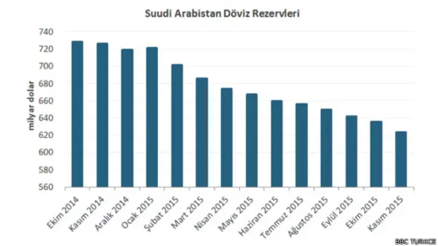 Suudi Arabistan'ın petrol fiyatı yüksekken biriktirdiği döviz rezervleri, yılbaşından beri büyük değer kaybetti.