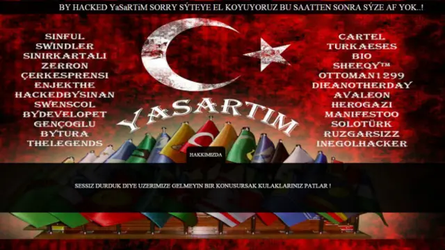 Kendisini 'YaSaRTIM' olarak adlandıran grup tarafından hacklenen internet sitesinin ana sayfasına Türk bayrağı ile tarihte kurulmuş olan 16 Türk devletinin bayrağının görüntüsü konuldu.