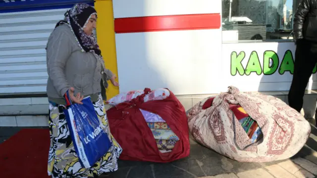 "Ağır eşyaları almaya zamanımız olmadı. Kocam da şehir dışında. Biz evde dört kişiyiz. Kira verecek durumda değiliz. Kardeşim Huzurevleri'nde, ordan başka gidecek yerim yok. Sersefil olduk, ortada kaldık" diyor.