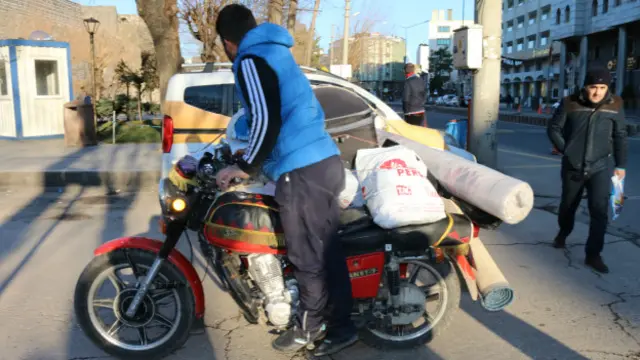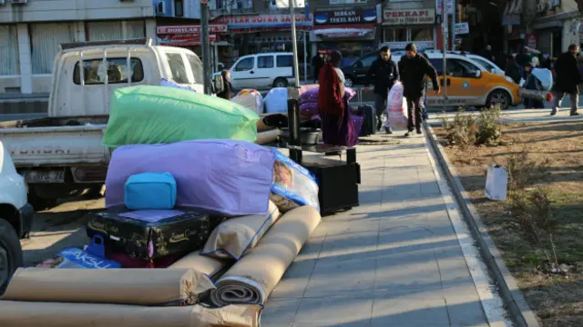 Seyfiye de caddenin karşı tarafında, eşyalarını başında bekliyor. Melikahmet Caddesi Azizoğlu Sokaktaki evlerini apar topar boşaltmışlar.