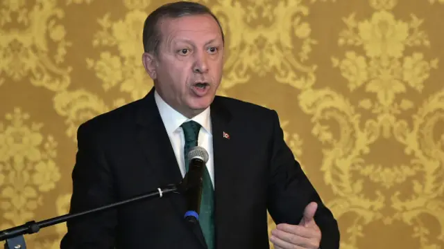 "Çünkü Esed şu anda Suriye'de aslında bitmiştir" diyen Erdoğan, Irak Şam İslam Devleti (IŞİD) ve diğer örgütlerin Suriye'yi paylaşmış durumda olduğunu söyledi.