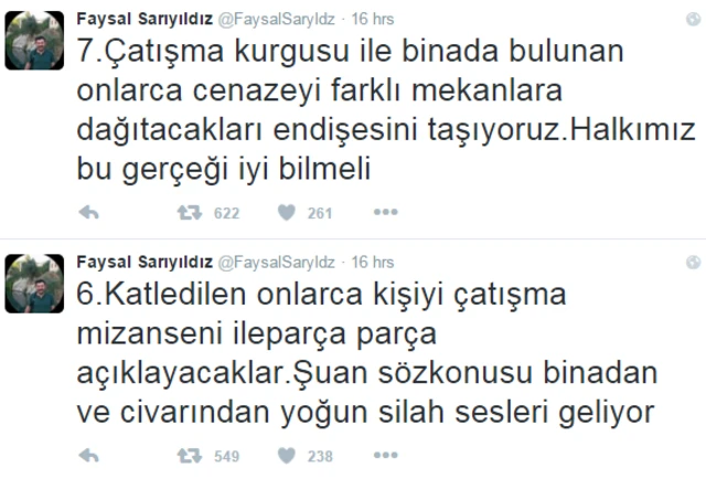 HDP Şırnak Milletvekili Faysal Sarıyıldız da, TRT'nin haberinin geri çekilmesiyle 'ölümün sıradanlaştırılmaya' çalışıldığını belirten Sarıyıldız, ''10 kişi öldürüldüyse geri kalanlar hastanede ya da emniyette değillerse neredeler'' dedi.