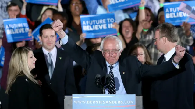 74 yaşındaki Sanders, gelir adaletsizliğini yok etme, üniversite eğitimini parasız hale getirme ve büyük bankaları dağıtma sözü veriyor.