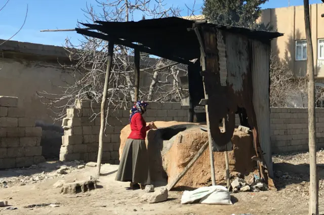 Abdülkadir Mahallesi’ne doğru giderken yol üstünde bulunan iki derme çatma taş fırında ekmek yapan Nusaybinli bir kadınla karşılaştım. İsmini vermek istemiyor.
