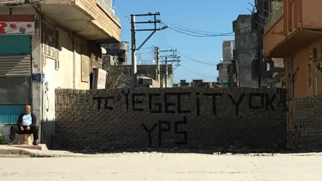 Kurulan barikatların üstünde “TC’ye geçit yok, YPS”, “APO”i “YDG-H”, “Kobani ruhuyla direnişe, YDG-H” yazıları dikkat çekiyor.