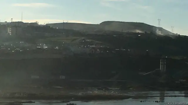 Boğazdan bakınca Cizre’nin görülen yüzü, çatışmaların en yoğun yaşandığı mahallelerden Nur Mahallesi. Arka tarafı da Cudi Mahallesi. Sokaklarında devriye gezen zırhlı araçlar görülüyor ve ara ara mahallelerden dumanlar yükseliyor.
