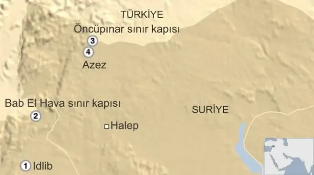 "Perşembe günü 500'den fazla kişi Halep'e gitmek üzere İdlib'ten çıkıp Hatay'a geçti. Türkiye sınırı boyunca yol alıp Kilis'e geldiler. Kilis'in Suriye tarafındaki Bab El Selam sınır kapısını geçtiler."
