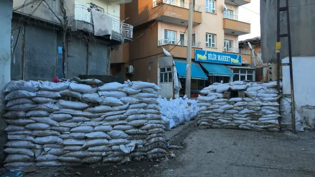 Cumhuriyet mahallesinin sokaklarının girişinde barikatlar, ara ara hendekler ve çatışmalardan zarar görmüş binalar var.