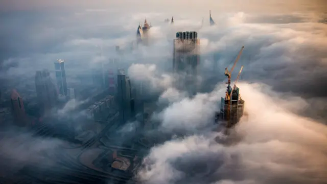 Dubai gökdelenlerle dolu. Ama sis sırasında bunların sadece 15-20 tanesi bulutların üstünde kalacak kadar yüksek.
