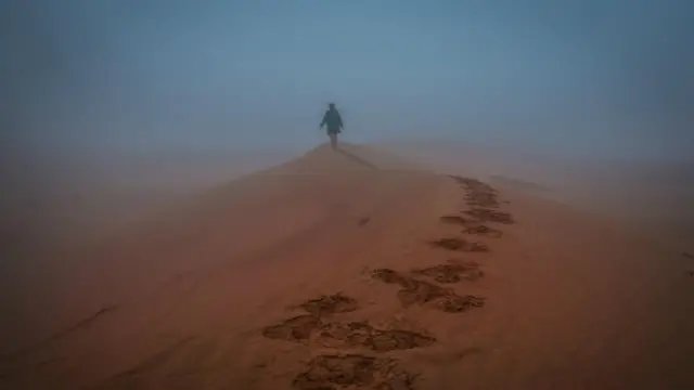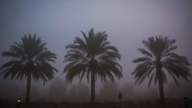 Gökyüzü berrak olduğunda bile sabah erken saatlerde çölün üstünü nemli, buğulu bir tabaka kaplıyor. Güneşin doğuşunu çölde izlemek, hele sis de varsa, şehre daha da büyülü bir hava veriyor.