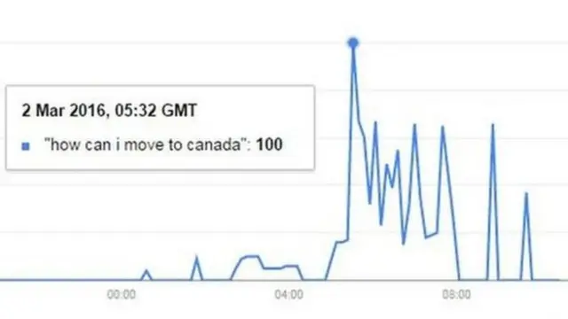 Kanada'ya taşınma arzusunun tavan yaptığı saat ise Rogers tweet attıktan 20 dakika kadar sonra GMT ile 05:32'da oldu.