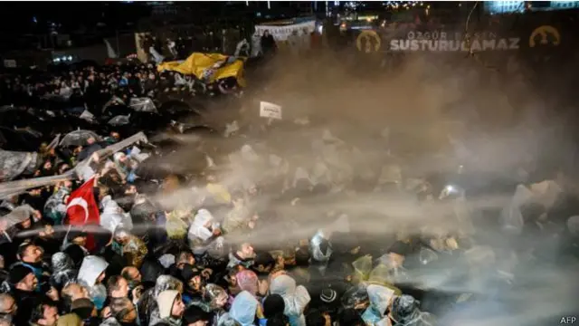Polis, Cuma ve Cumartesi günü gazete binası önünde gerçekleştirilen gösterilere biber gazı, plastik mermi ve tazyikli suyla müdahale etmişti.