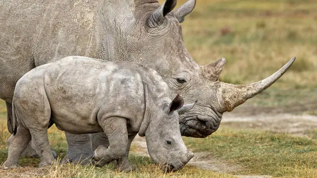 Kenya'da bir beyaz gergedan ve iki aylık yavrusu