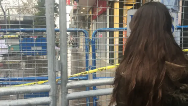 Polis barikatının önünde, patlamanın olduğu yere doğru bakan genç bir kadın görüyorum. Kıpırdamadan o tarafa bakıyor.