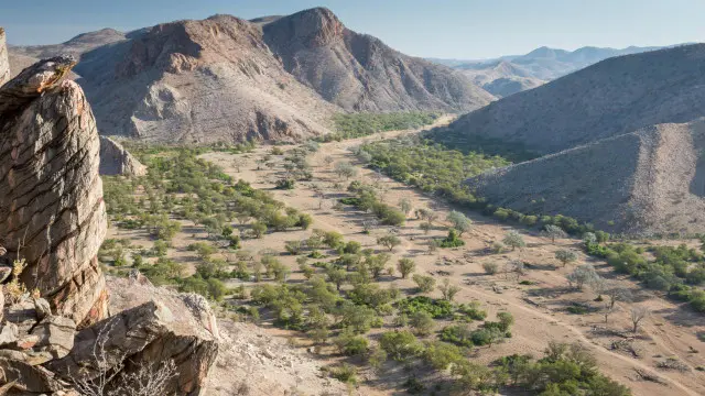 Namibya’nın kuzey batısında Huab ve Ugab nehirleri arasındaki tenha bölgeye gittik. Burası aşırı sıcak ve kuru, dağlarla bölünmüş bir çöl.