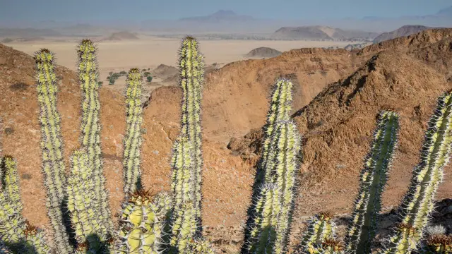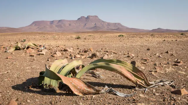 Namibya’nın kurak iklimine uyum sağlamış çok ilginç ve muhteşem bitkilere de rastladık. En ilginçlerinden biri, sadece iki yaprağı olan ve hep büyüyen welwitschia adlı bitkiydi.
