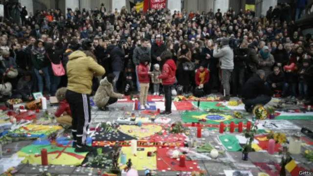 Brüksel merkezinde borsa binası önünde toplanan çok sayıda kişi, kaldırımlara dayanışma mesajları yazdı, ölenler anısına mumlar ve çiçekler bıraktı.